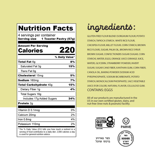 Bursting with strawberry sweetness, these toaster treats are wrapped in a golden, cookie-like crust with a touch of vanilla-flavored icing. Individually wrapped for on-the-move munching.